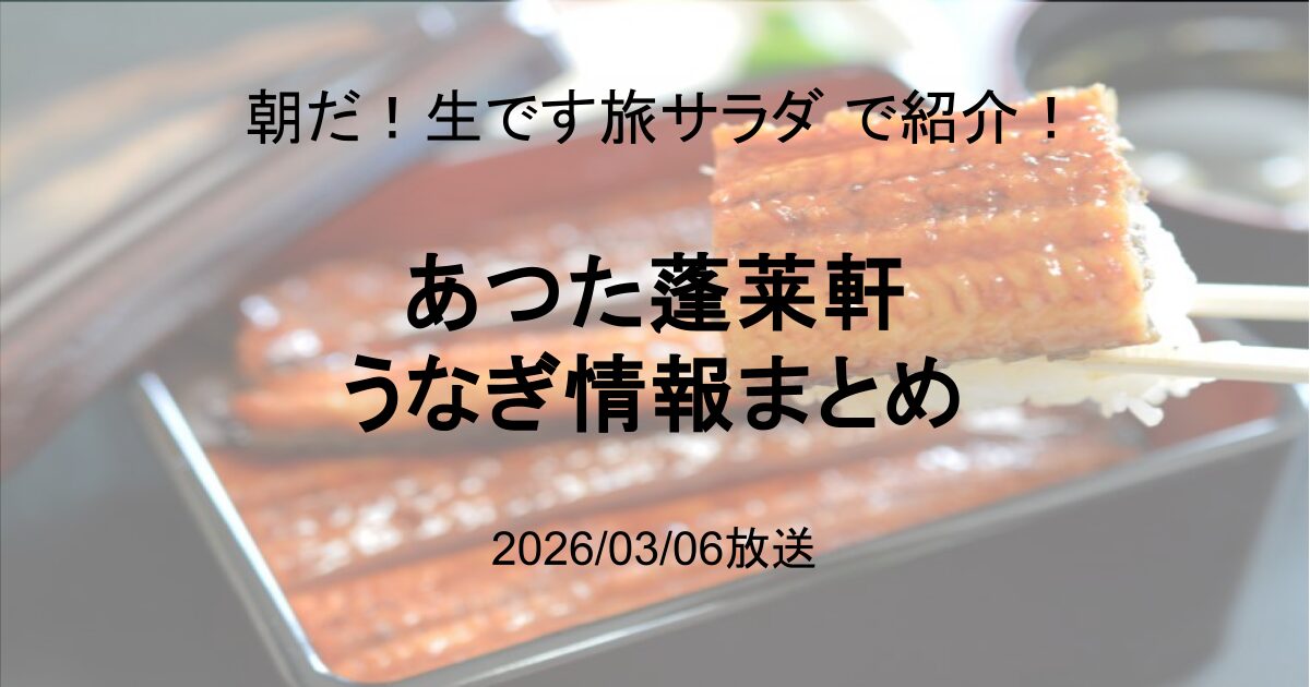 2026/03/06放送の「朝だ!生です旅サラダ」で、あつた蓬莱軒の鰻が紹介されました。