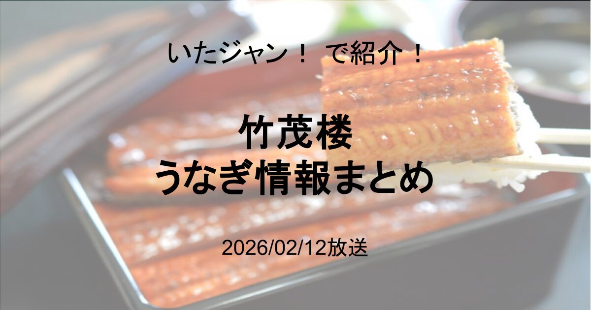 2026/02/12放送の「いたジャン!」で、竹茂楼の鰻が紹介されました。