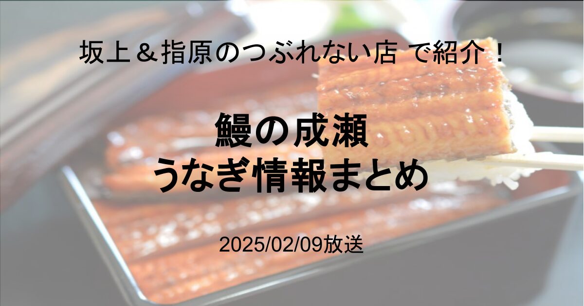 2025/02/09放送の「坂上&指原のつぶれない店」で、鰻の成瀬の鰻が紹介されました。